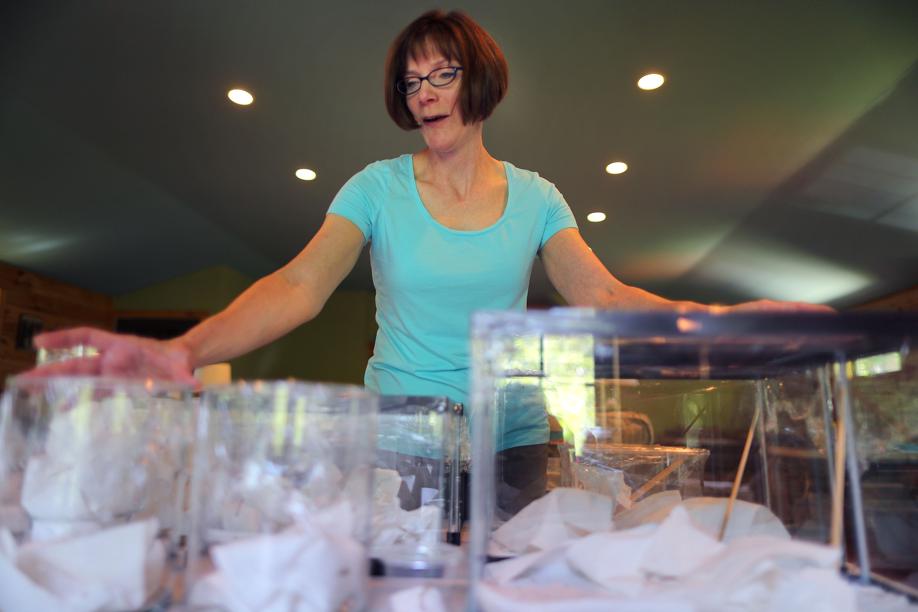 “I have literally used every terrarium I have owned,’’ she said, laughing. “I have two big tables in our office and they are set up [for the insects].’’