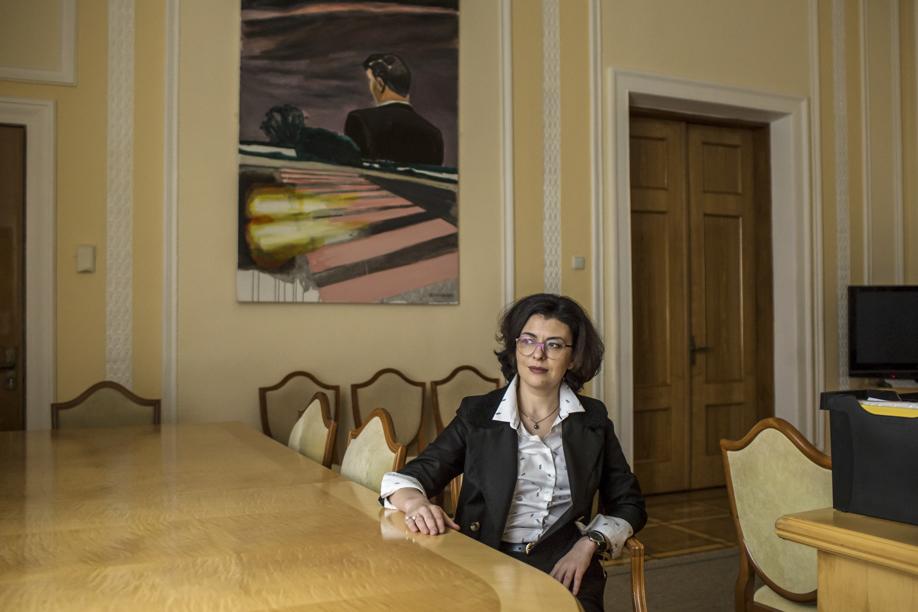 KIEV — When she moved into her office as deputy speaker of parliament a little over a year ago, Oksana I. Syroyid hung a large oil painting called “The Edge of the Sky Is Glowing.’’ It shows a man turning his back on the viewer while flames burn on the horizon.