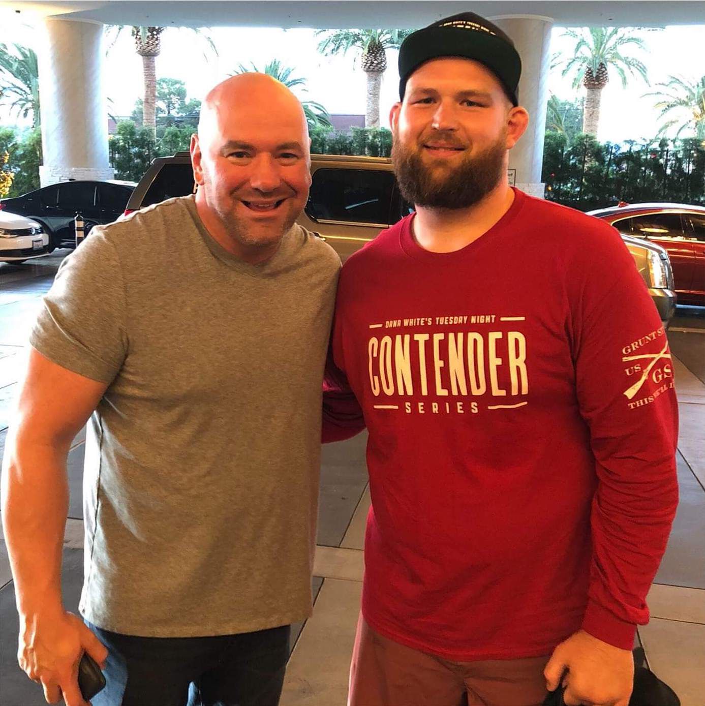 Tuesday Night Contender Series host Dana White (left) poses with Norton’s Jeff Hughes. Hughes won a UFC contract with a one-round TKO during White’s event July 24. Submitted photo