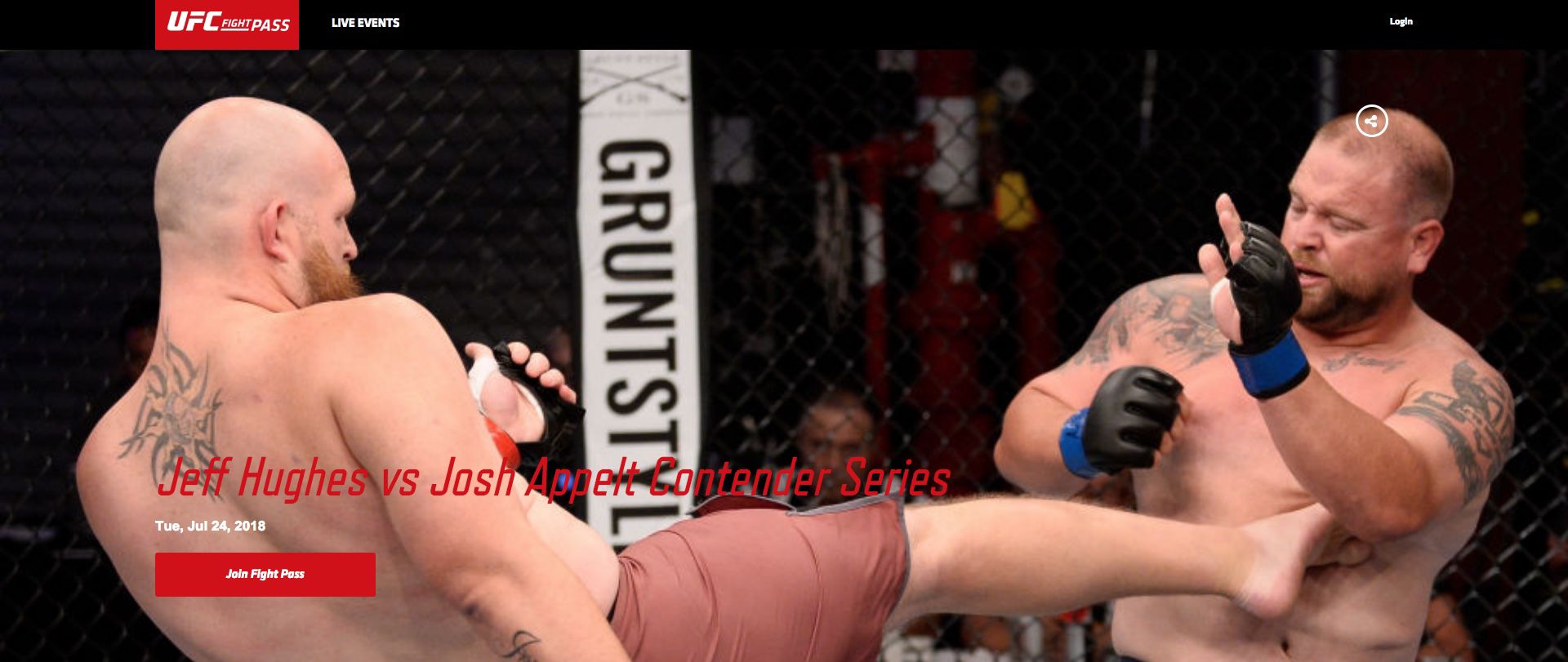LFA Heavyweight Champion Jeff Hughes lands a kick on Josh Appelt during his one-round bout that Hughes won in a TKO during the UFC’s Tuesday Night Contender Series. Screenshot from WWW.UFC.TV