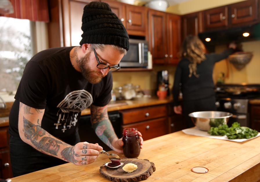 Not what you expect from a wunderkind chef who’s worked in renowned kitchens in New York and Chicago. But then Baltzley, a former sludge-metal drummer who has a knife-and-fork tattoo on his Adam’s apple, isn’t famous for doing what people expect. That’s how he ended up here, living with his pregnant girlfriend at her parents’ house in the woods of Falmouth. (Most recently, the mercurial Baltzley has cooked at Ribelle in Brookline, taken the traveling pop-up dinner CRUX on a Rust Belt tour, and been an Uber driver in Boston.)