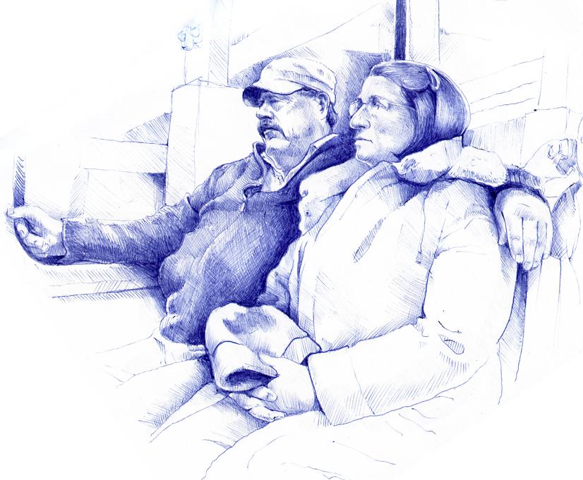 Down deep in the hushed bowels of the earth, wheels stopped. You pick up your phone and search for the signal. I pick up a pen and search for the angles, the gently laced fingers, the only comfortable way to lean on the window sill of a patiently waiting train.