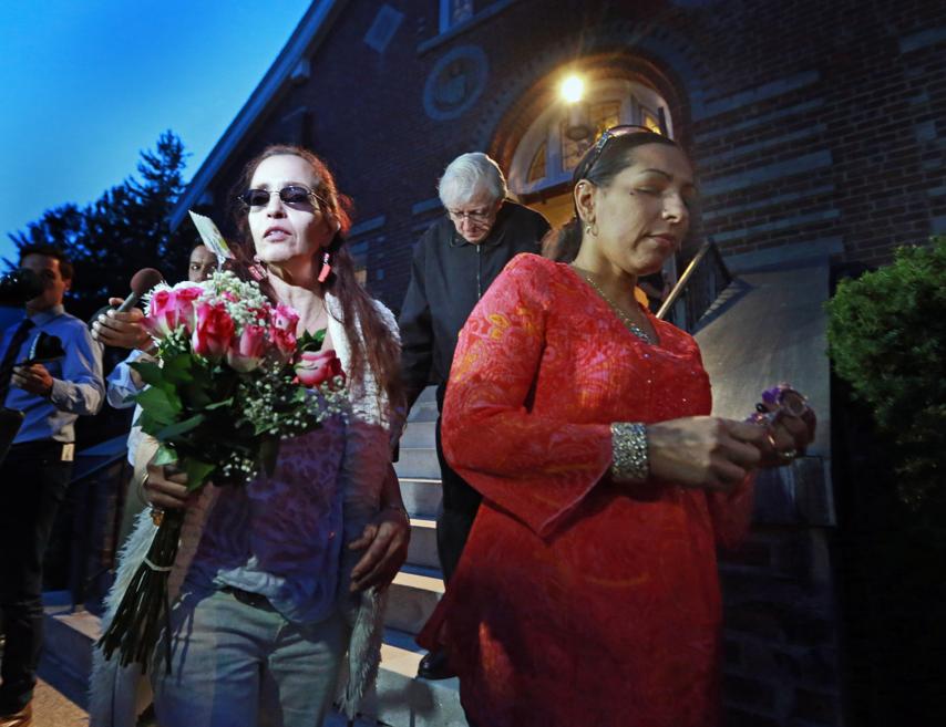 “[We] came out of love,’’ one said, holding a floral bouquet.