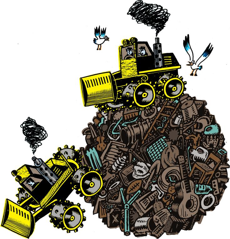 RENO: Think about the office where you work, or the living room of your home, or places like hospitals and schools. What makes it possible for these places to be what they are is partly the elimination of waste. A comfortable living room is a living room that doesn’t have odors from waste, that doesn’t have mice or cockroaches. A hospital, to be a hospital, has to be sanitary — that’s not just an arbitrary thing. But that order is cultural. It’s a particular idea we have as North Americans. And [it is dependent on] what we subtract and send somewhere else. When you buy a new iPhone and throw away the old one, that makes trash but so does simply taking an iPhone to your home, which you’re keeping as your home instead of as a place where you hoard waste.