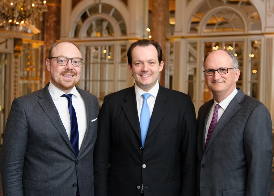 Music director Andris Nelsons was the center of attention at the Boston Symphony Orchestra’s annual Higginson Society Dinner, held the other night at the Fairmont Copley Plaza Hotel. Nelsons (below center) was interviewed by “Greater Boston’’ host Jim Braude, and the evening’s other speakers included BSO trustee Ron Casty, Deutsche Grammophon president Clemens Trautmann (left), the orchestra’s managing director Mark Volpe, (right), and Jessica Zhou, principal harpist with the BSO. The Higginson Society Dinner, also known as “Meet the Musicians,’’ gives supporters of the BSO a chance to interact with its members, 20 or so of whom attended the dinner.