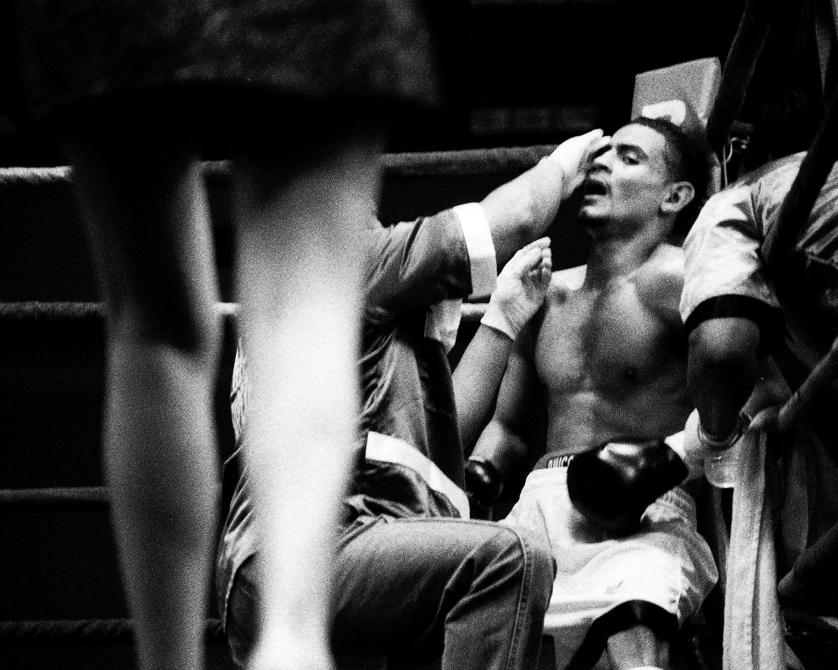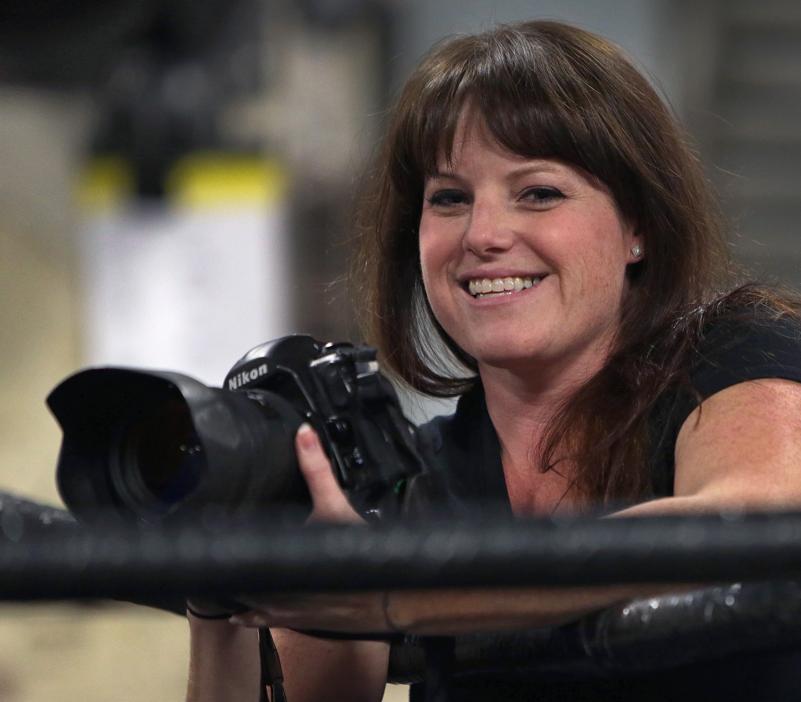 It can be a dirty job. Harney, whose cameras of choice are a Nikon D3S or a Nikon D2H, never wears white because she’s close enough to the action to catch a spray of blood. She’s been vomited on twice, had a fighter fall on top of her through the ropes, and witnessed numerous gruesome knockouts that left boxers unconscious on the canvas.