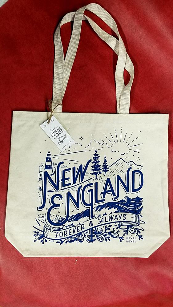 Boston-area printmaker Amanda Williams Galvin of Revel Revel designs, prints, and sews this sturdy canvas “New England Tote.’’$20 at Davis Squared, 409 Highland Ave., Somerville, 617-666-6700, davissquared.com