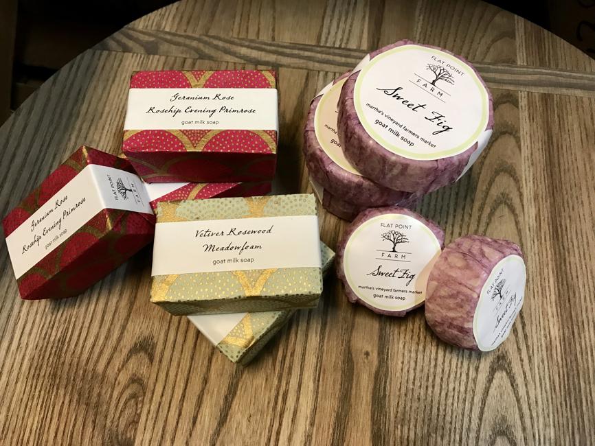 This ultra-moisturizing raw goat’s milk soap made on Martha’s Vineyard’s Flat Point Farm uses fair-trade vegetable oils and natural scents. $5.50 to $12 at Portobello Road, 55 Boylston St., Chestnut Hill, 617-264-2020, portobelloroadusa.com