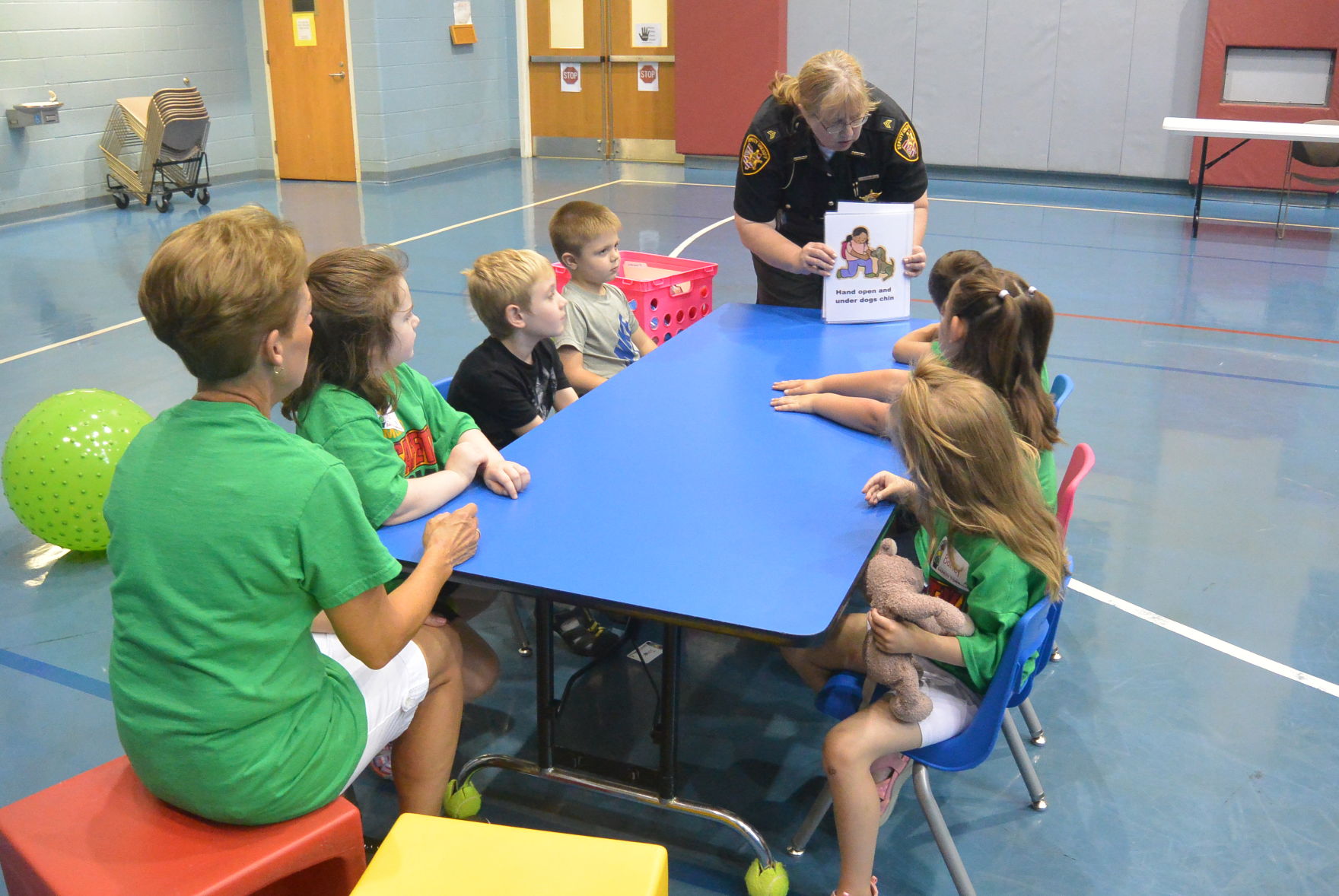 Sgt. Beverly Fraser, of the Medina County Sheriff’s Office, presented the lessons throughout the week of the Safety Town +PLUS program. On the last day, the children learned about safety around animals and pets.