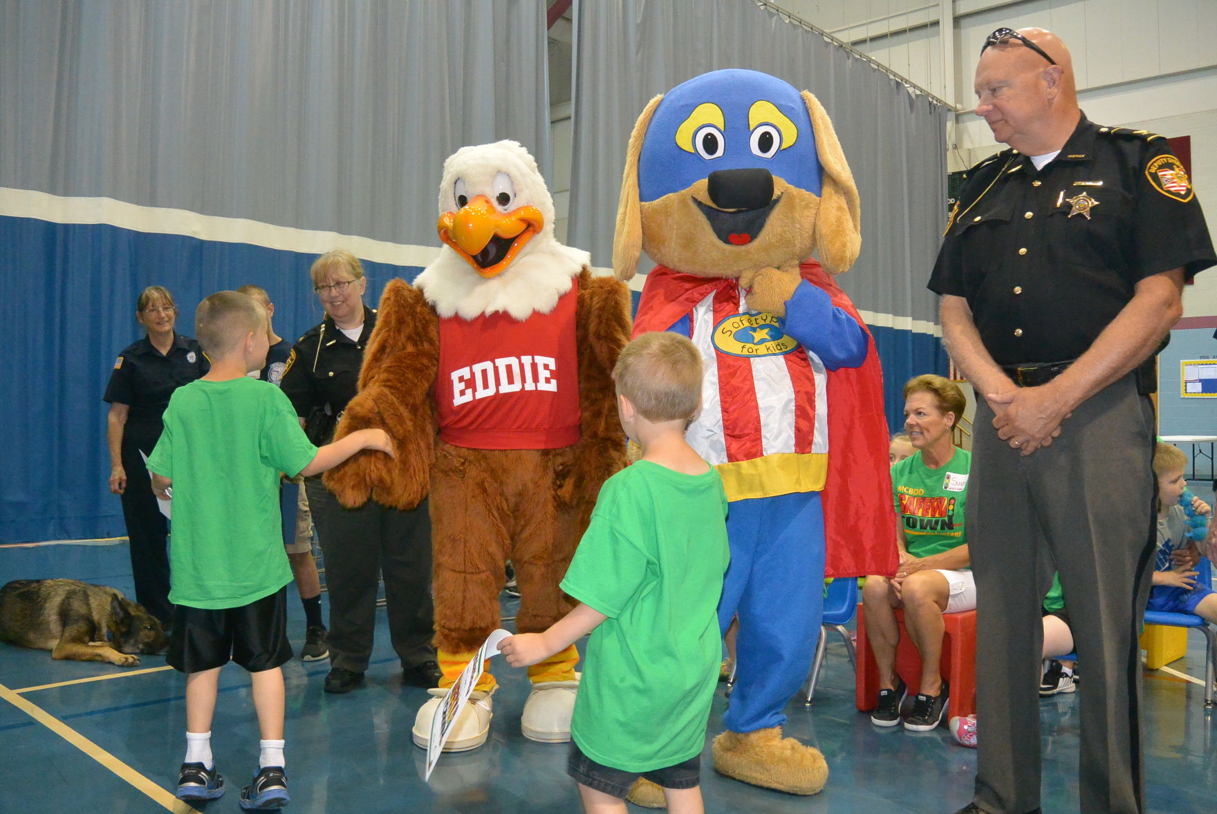 After receiving his or her diploma, each child shook hands with the community members involved in Safety Town +PLUS and with mascots Eddie the Eagle and Safety Pup.