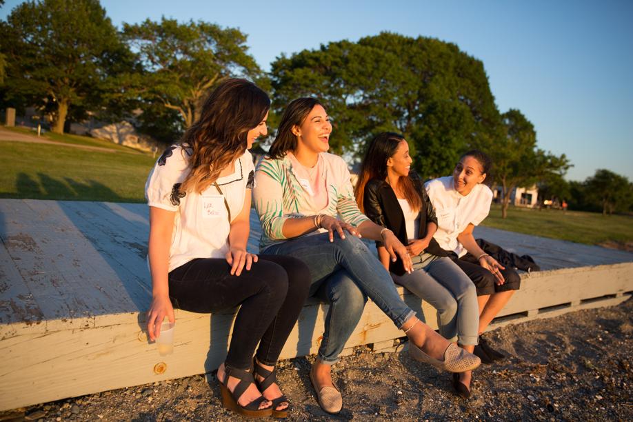 But on this night, women sip chardonnay from a covered pavilion overlooking Boston Harbor and the city’s skyline. A DJ plays music as wedding planners play lawn games and tour the island on golf carts as travel writers, bloggers, and social-media influencers toast marshmallows at a beach bonfire.