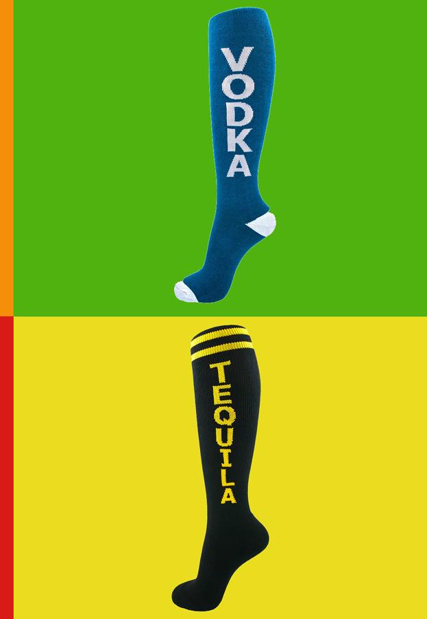 Knee-high HOSIERY emblazoned with, yep, booze