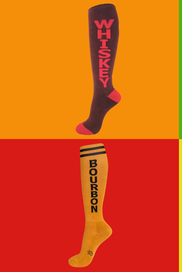 Master mixologists and amateur alcohol enthusiasts alike will chuckle at the prospect of pulling on these colorful socks that spell out his or her preferred poison in bold, block letters. Hide your gams under long pants or parade and proclaim by pairing them with running shorts. The dress and athletic styles are equally amusing. Made from cotton with an infusion of Spandex and other stuff, the socks are soft, stretchy, and suitable for both men and women, assuming they’re of age. “Booze’’ socks by Gumball Poodle, $12 per pair at The Boston Shaker, 69 Holland St., Somerville, 617-718-2999, www.thebostonshaker.com