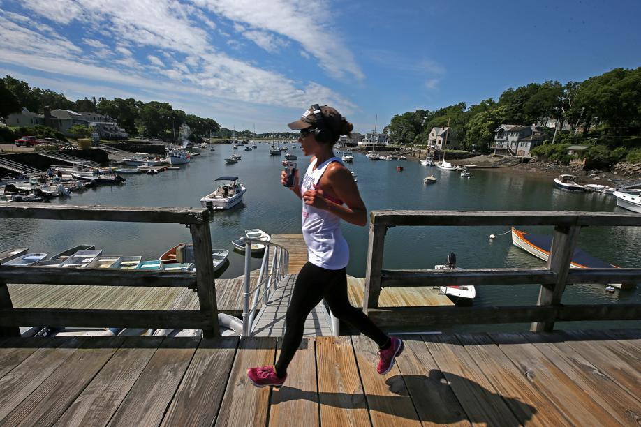 A runner crossed the footbridge over Lobster Cove in the Annisquam section of Gloucester for a summer view on Wednesday. High pressure will bring sunny skies, and a temperature range of 76-81 is predicted. Full report, B15