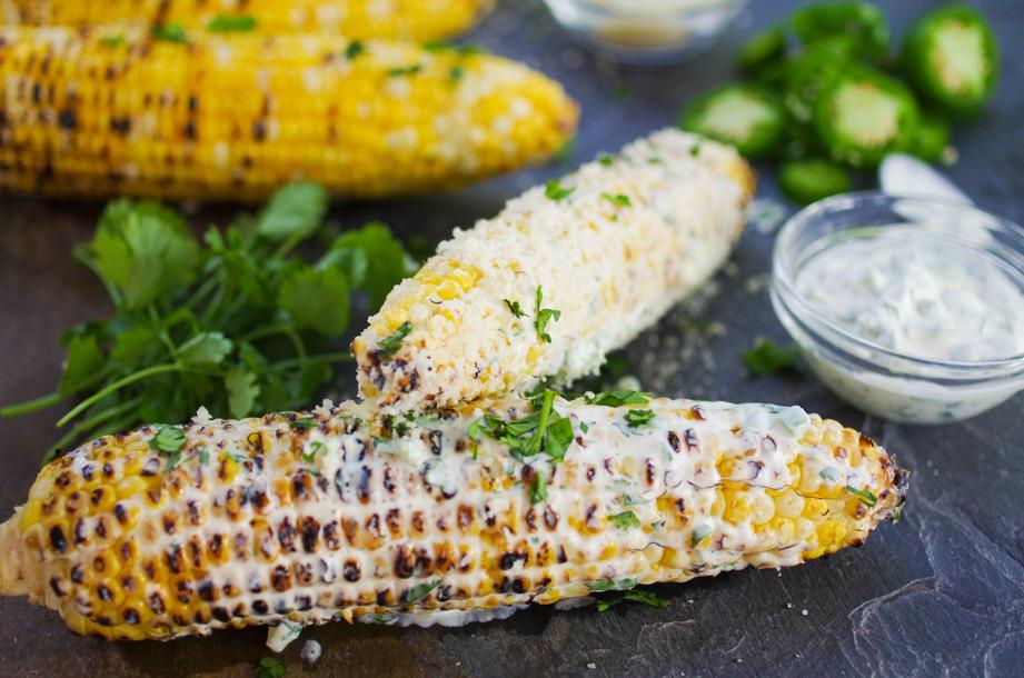 Grilled corn is always a crowd pleaser, and finishing it with this spicy crema is a fun spin on the classic Mexican street corn. If you’re looking for more heat, try leaving a few (or all) of the seeds in the jalapeno.