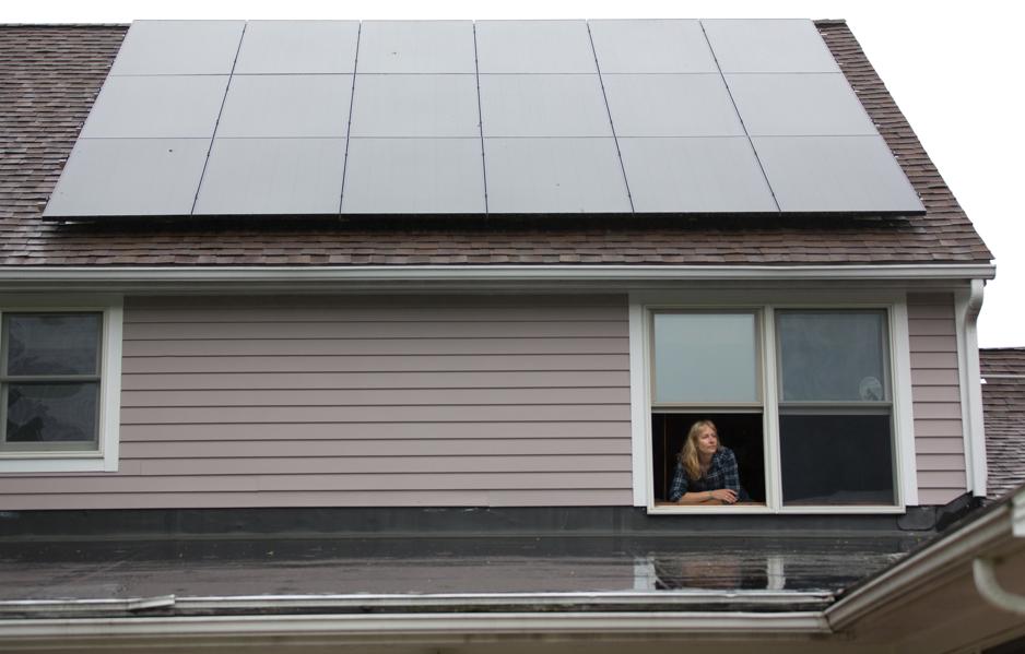 Just out of view on the back side of Rob and Irene Kneeland’s Colonial house in Sutton, 28 photovoltaic panels are transforming light into power every time the sun shines.