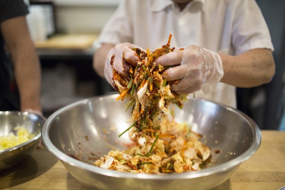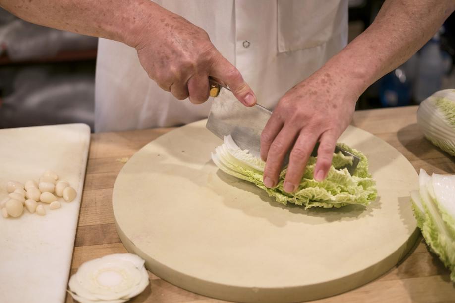 I’ve tried various additions to Shee’s recipe — fish sauce, daikon, dried shrimp — but his subtle, elemental version remains my favorite. During our tutorial, he gently scolds me for over-handling the Napa cabbage. We both laugh. How American — piling on, over-handling! And I now see that it’s Shee’s restraint that animates his superior kimchi.