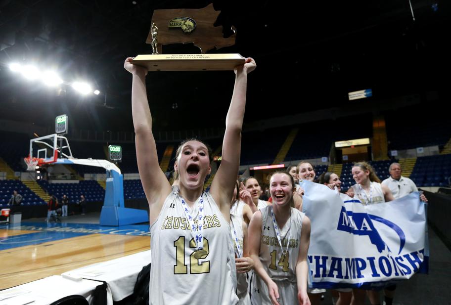 He stood back in the postgame ceremony, allowing the girls to absorb their shining moment. Shrill, emphatic screams filled the arena as Corcoran collected the trophy and, with her team in tow, sprinted across the court to embrace the student fans.