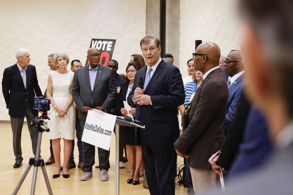 The news conference was to announce formation of a coalition supported by the local leaders to oppose the trio of proposals backed by the nonprofit Dallas Hero, which successfully petitioned over the summer to get the propositions on the Nov. 5 ballot. It sets up what will probably be the most significant fight in Dallas in the Nov. 5 election.