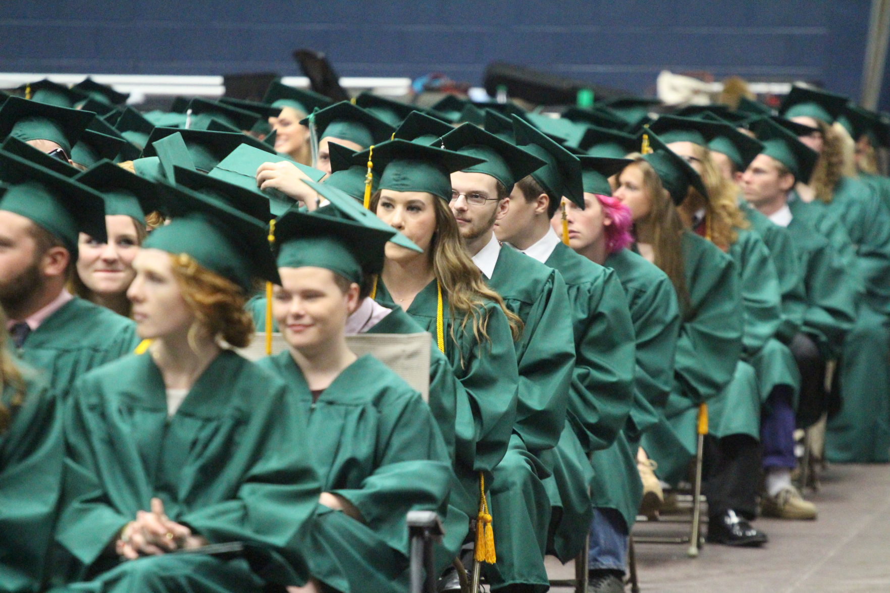 I got a real kick last Saturday while watching the kids file out of the staging area – hidden from the audience by only a curtain, but audibly hyping themselves up like a football team in the locker room before a big game – to take their seats on the arena floor. Administrators and teachers stood atop the stairwells on both ends of the arena with cups for the kids to spit out chewing gum into, something I’m sure my mom wish would have been enforced during my graduation because I’m pretty certain she’s still ticked off to this day that I chewed gum throughout the whole ceremony.