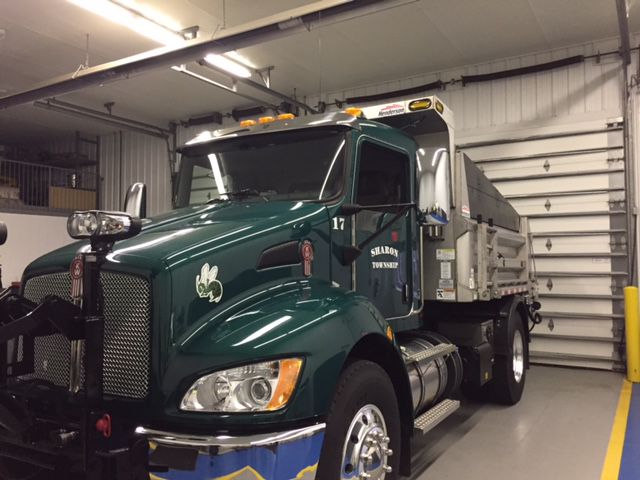 SHARON TOWNSHIP – When Sharon Township trustees met briefly Nov. 22, they learned from Bob Turek, township maintenance supervisor, that the new plow/salt truck, a 2016 Kenworth, has already been utilized during the recent snowfall. This truck replaces a 2006 International plow truck. The truck is painted green (one of Highland’s colors) and boasts a Highland Hornet logo to show community support for Highland schools.