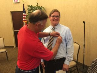 Lions Club President Larry Douglas makes Logan Detwiler, the newest member of the Wadsworth Lions Club. Submitted photo
