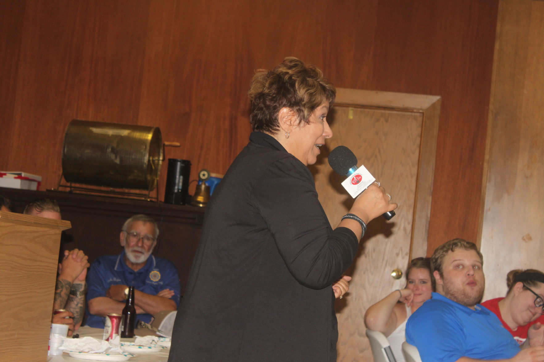 Cindy Parsons talks to the crowd at the American Legion. Photo by EMILY CANNING-DEAN