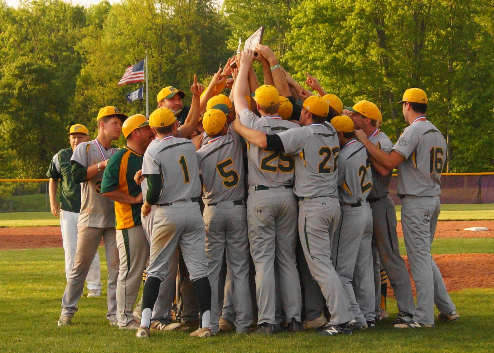 Medina celebrates its Barberton Division I District baseball championship, which came on graduation day for the Bees’ seniors. Photo by RAY SARVIS