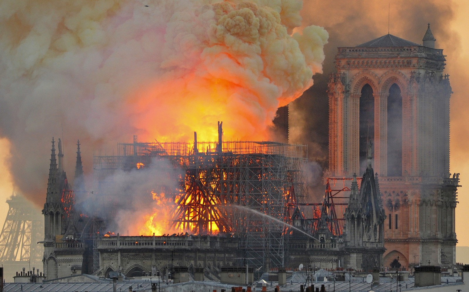The April 15 fire at Notre Dame Cathedral in Paris is symbolic of what’s happening as people turn against Christianity, a commenter says. (Thierry Mallet/AP )