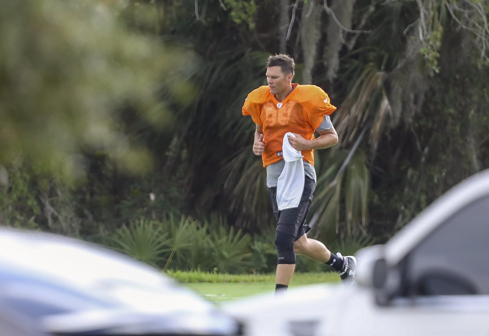 According to the Tampa Bay Times, though, new Buccaneers quarterback Tom Brady worked out with teammates at a local high school Tuesday morning.