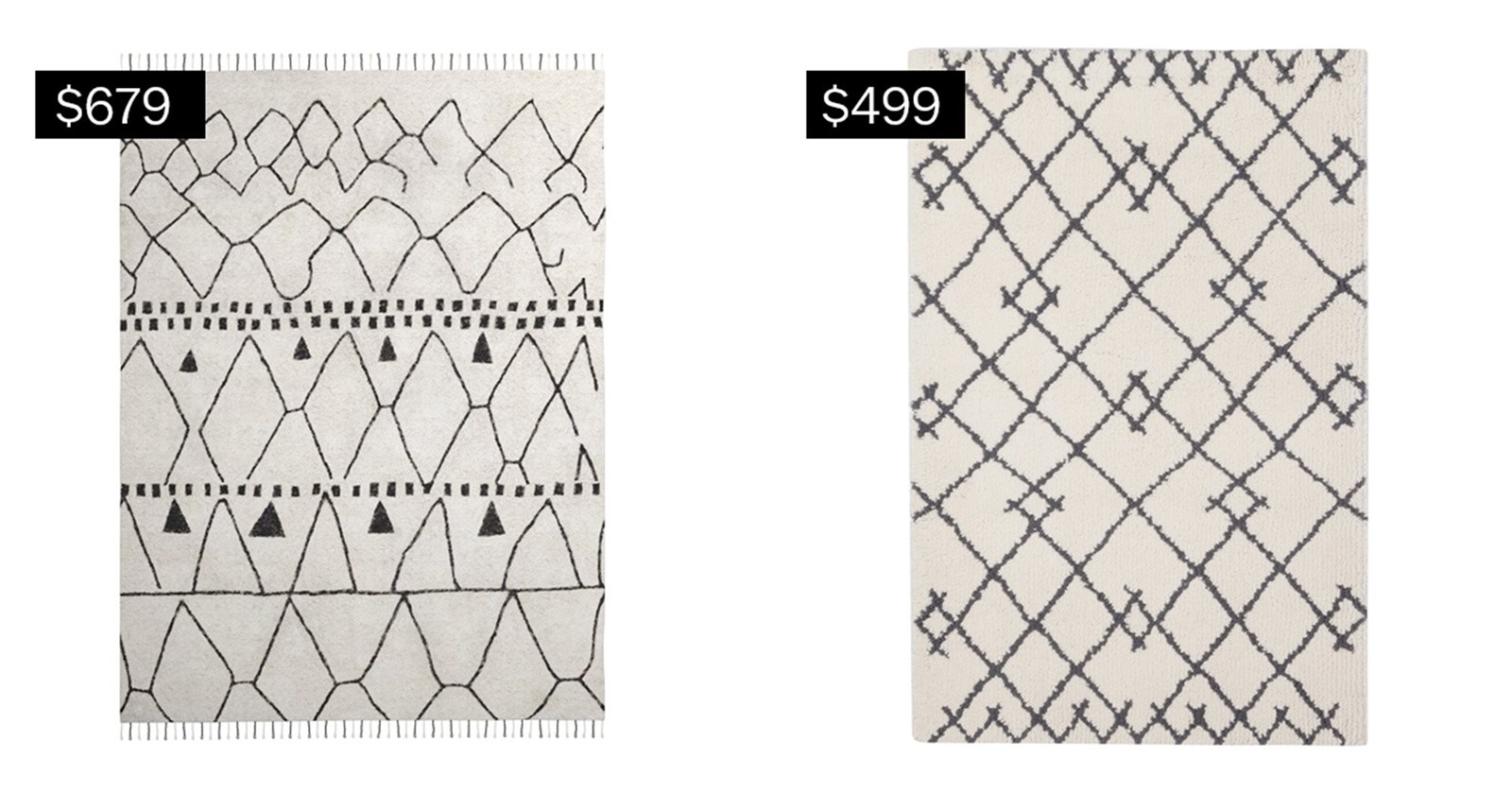 8-by-10 Banu shag rug, left, from westelm.com; 7-by-10 Kenya fleece accent rug from target.com.
