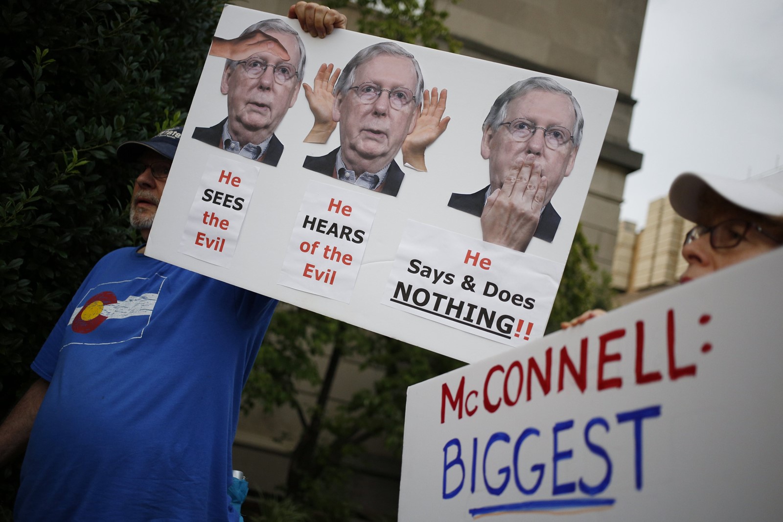 House Democrats signed onto a letter urging McConnell to act immediately on the House-passed legislation, which would require federal background checks for all firearms sales and transfers, including online and at gun shows. In Kentucky, where McConnell is recuperating from a weekend fall that left his shoulder fractured, activists have been demonstrating at his home and protesting at his downtown Louisville office.