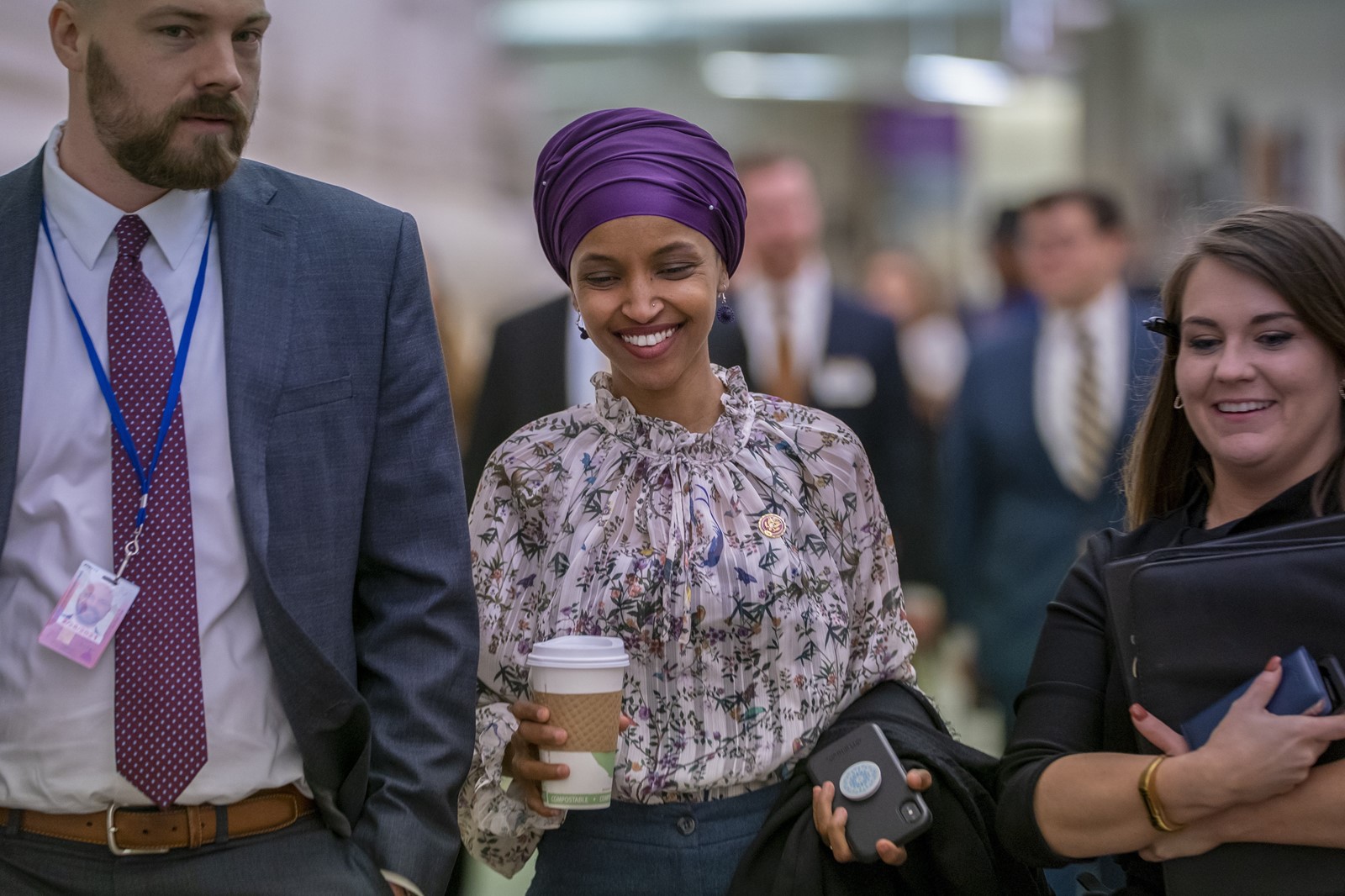Some Democrats hugged Omar, one of two Muslim women in Congress, during the meeting, according to other officials who spoke on the condition of anonymity. She’s also received powerful boosts from fellow Democratic freshmen Reps. Alexandria Ocasio-Cortez of New York and Rashida Tlaib of Michigan.