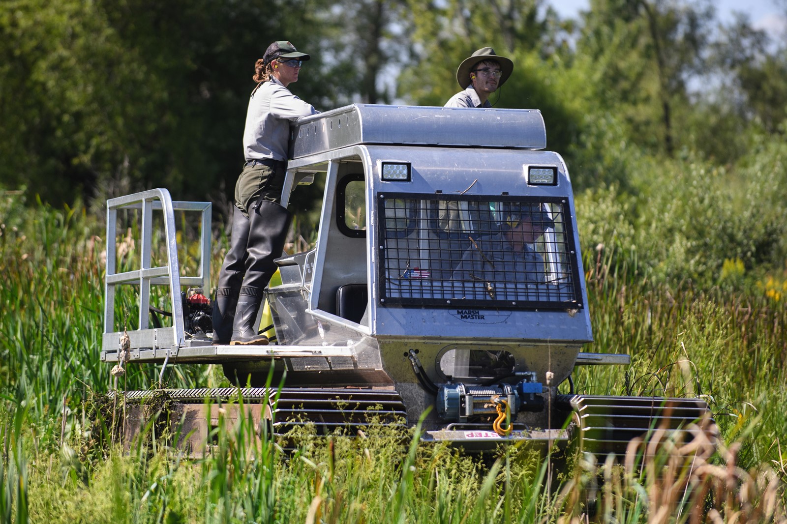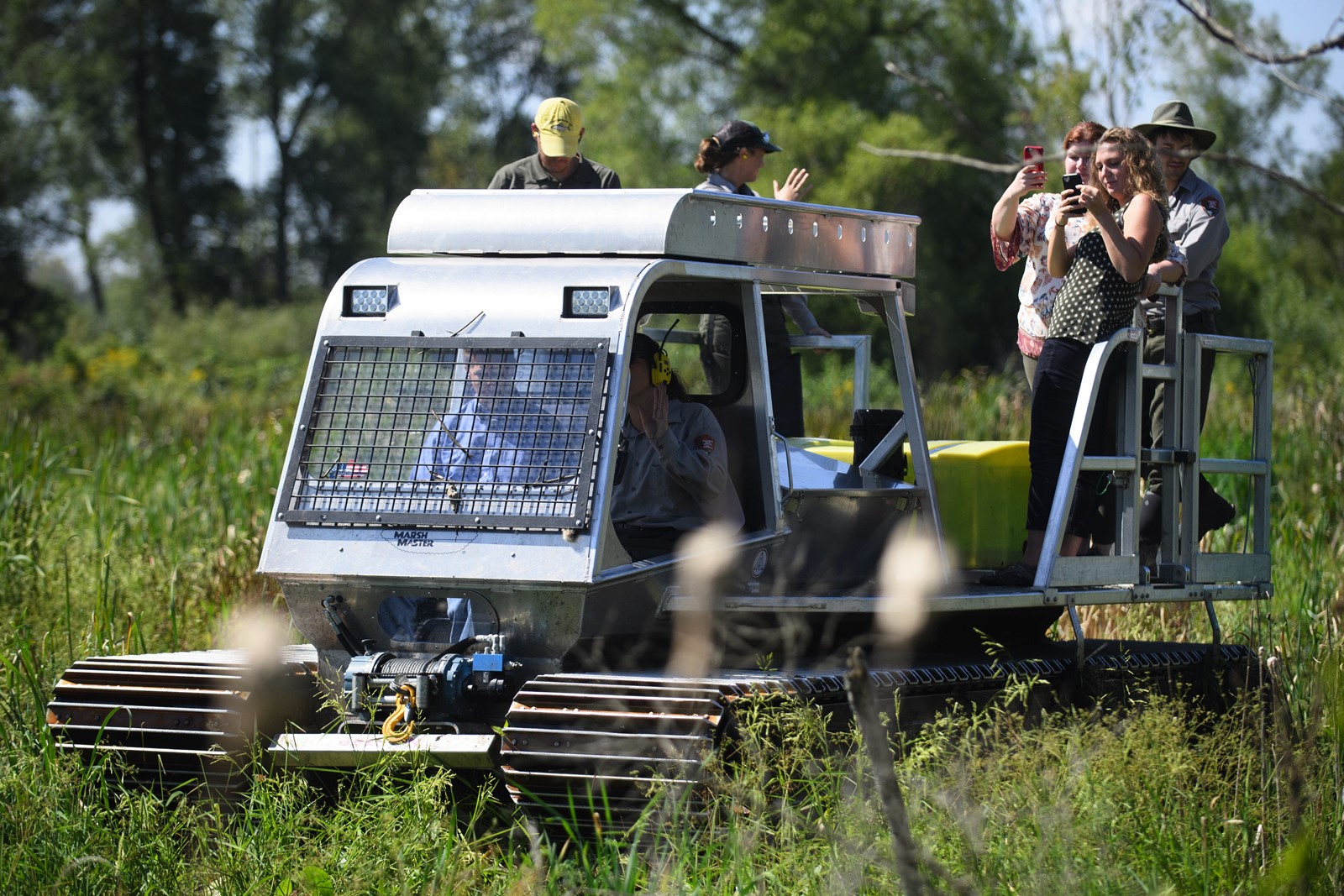 That’s what Dan Mason, a botanist with the park, calls the park’s Marsh Master, an amphibious vehicle with a 100-gallon sprayer and other tools for removing phragmites, hybrid cattails and other species that crowd out the plants that should be there.